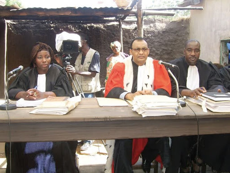 Panel of legal figures seated during the trial