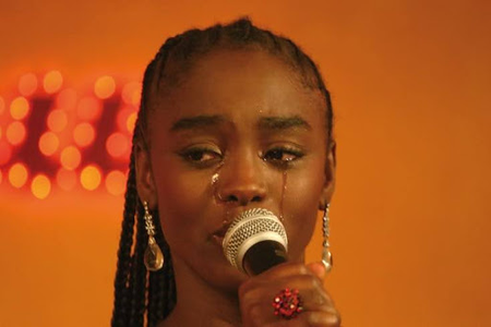 Opening scene from Bamako featuring a singer performing