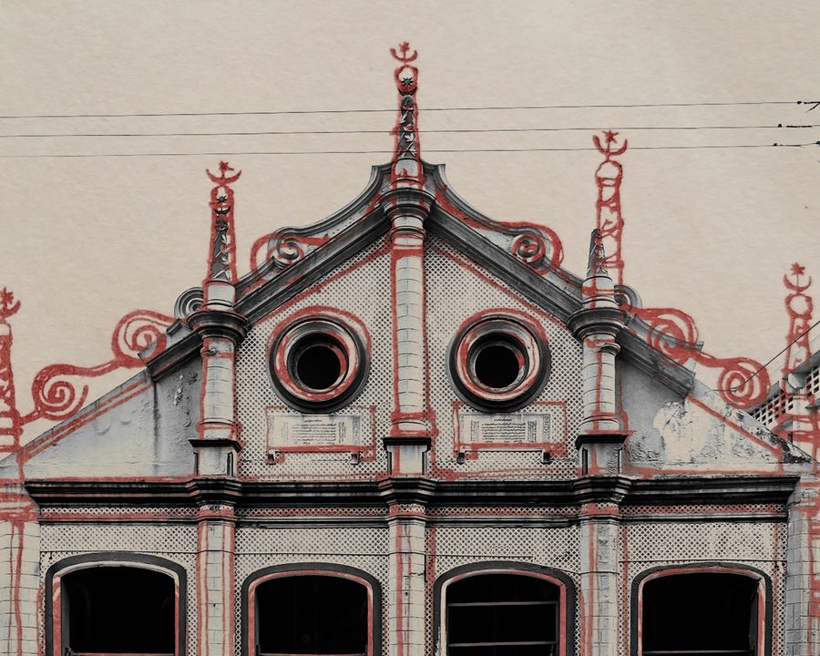 Shitta Bey (Mosque) In A Time Continuum (60s vs 2017) — Double exposure photograph, 2024. Marina, Lagos.