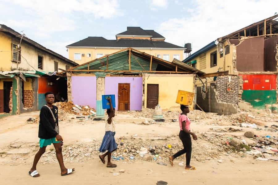 Ọlájídé Ayẹni is a media artist who shares stories about the built environment and its impact on people. His practice combines architecture and documentary photography, frequently documenting urban change and how it affects those who live and work near sites of action, construction, or destruction.