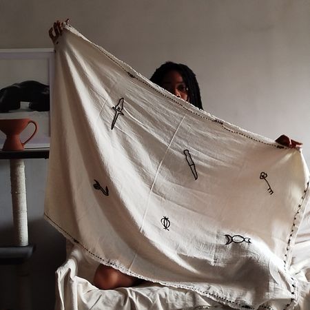 The process really begins in my mind. When I conceive the idea and think about how to present it, that’s when it starts. Some ideas are personal, others about something bigger. But from that moment, I begin a kind of internal ritual. Like with the scarf I made dedicated to Hecate — the goddess I worship — I used her symbols: the athame, the torch, the serpent, garlic, the triple moon. It all came together as part of the ritual of making.